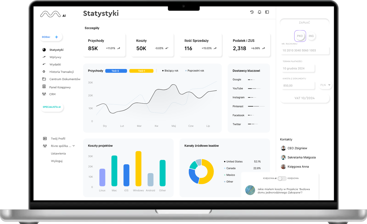 Integracja z bankami online oraz automatyczny odczyt danych z dokumentów pozwalają nam na oferowanie niespotykanego dotąd standardu obsługi Klienta.